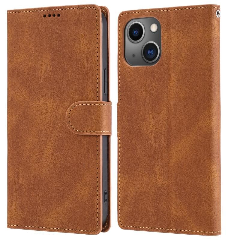 Θήκη για iPhone 14 Plus με φανταστική κλασική υφή δέρματος μοσχαριού (Χρυσό Ρόδι)