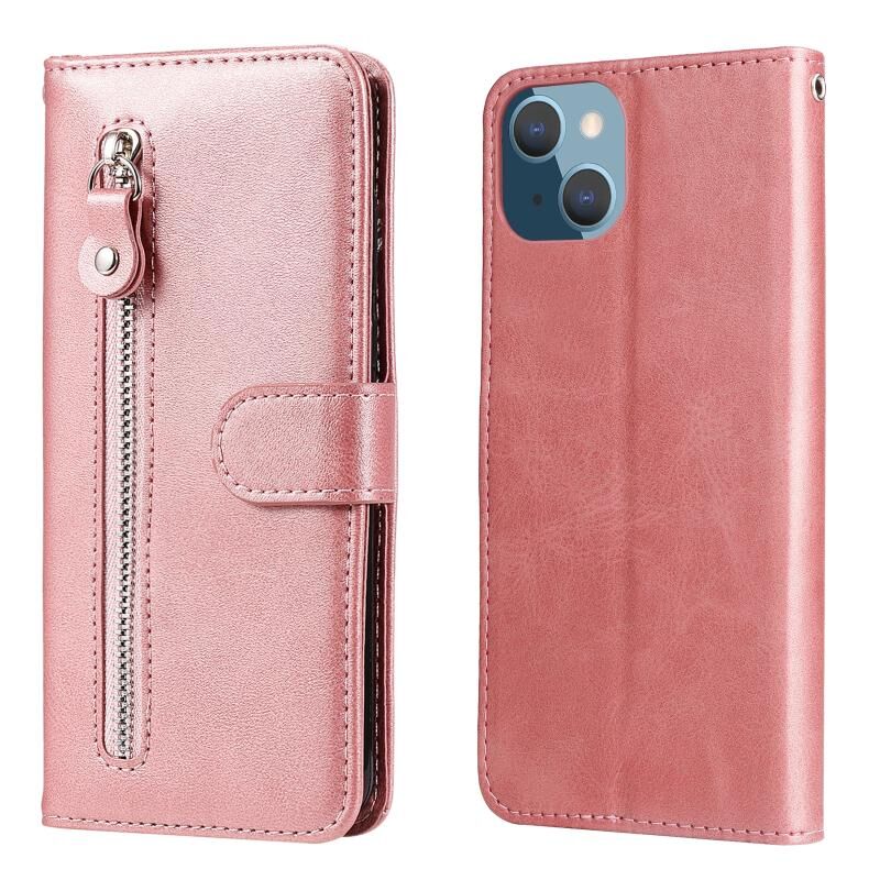 Θήκη τηλεφώνου δέρματος με οριζόντιο άνοιγμα και φερμουάρ, με υφή μοσχαριού για iPhone 14 Plus (Κόκκινο)