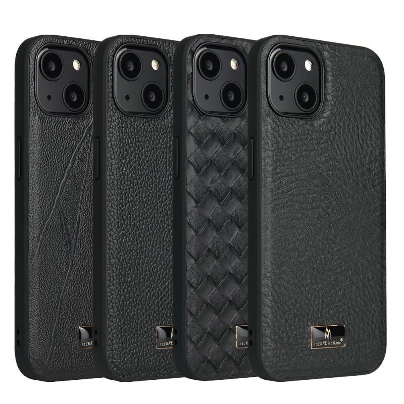 Θήκη κινητού τηλεφώνου με υφή δέρματος Fierre Shann για iPhone 14 Plus (Υφαντό Μαύρο) (FIERRE SHANN)