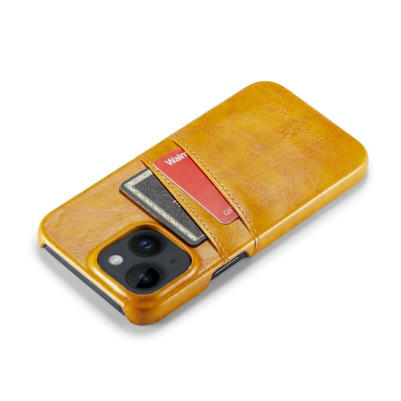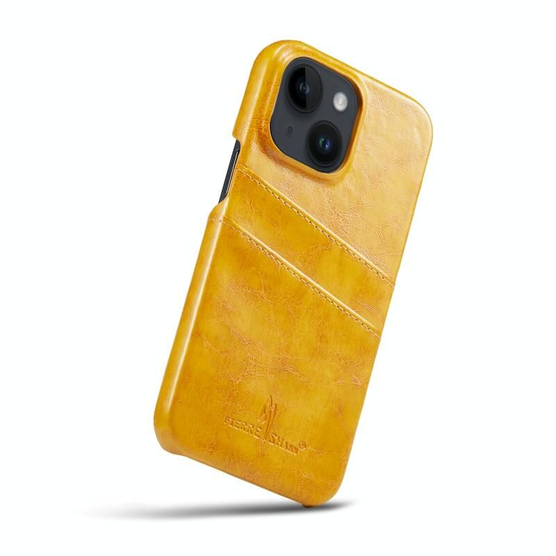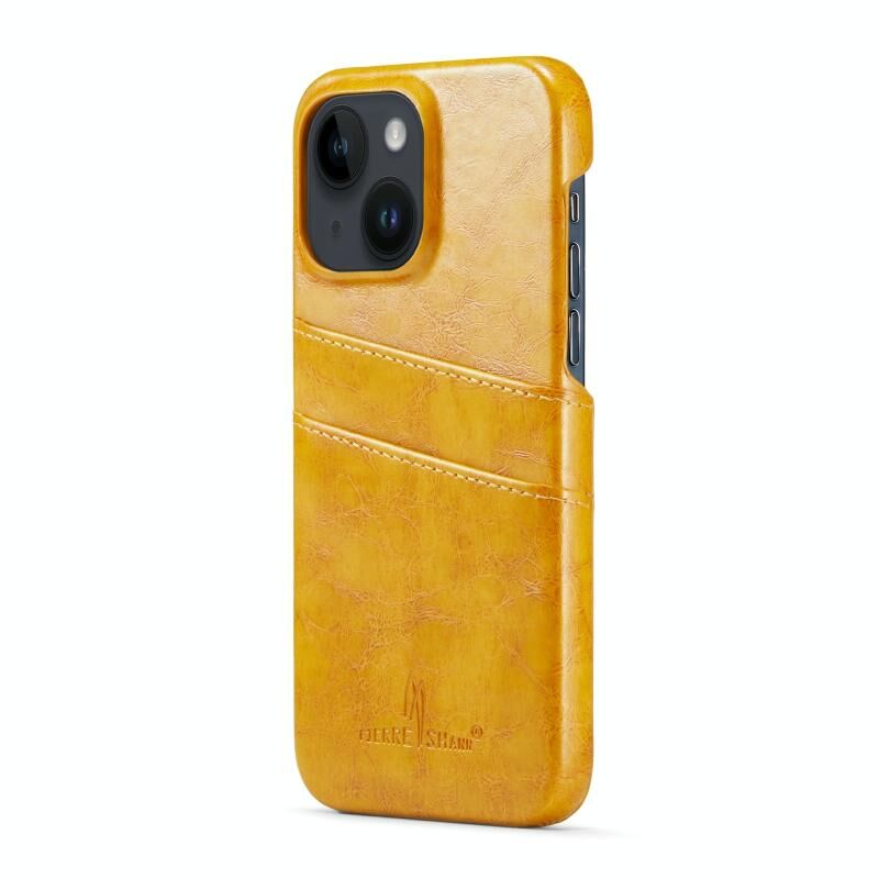 For iPhone 14 Plus Fierre Shann Retro Oil Wax Texture PU Leather Case with Card Slots (Yellow) (FIERRE SHANN)