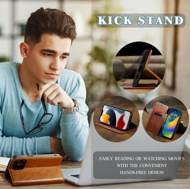 Θήκη τηλεφώνου FIERRE SHANN Vintage Bark Texture Wallet από δέρμα για iPhone 14 Plus (Καφέ) (FIERRE SHANN)