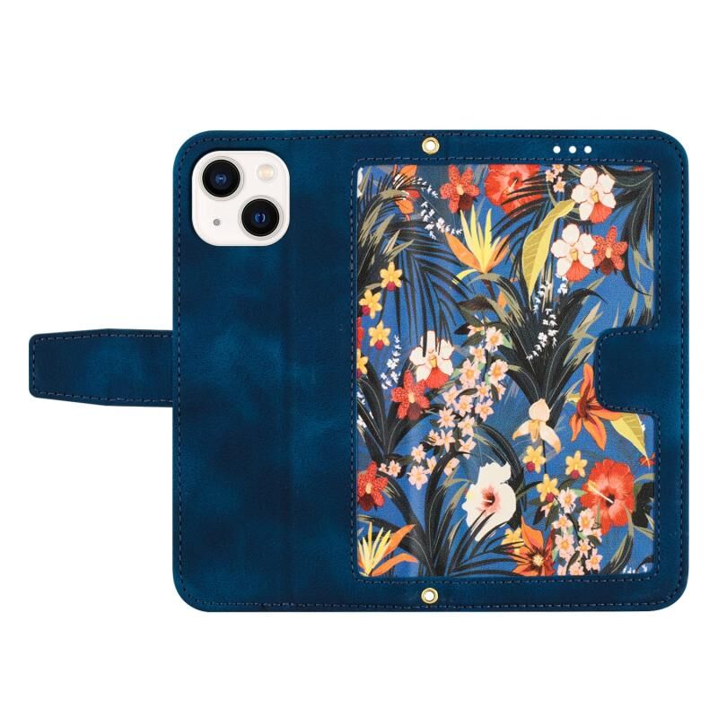 Θήκη τηλεφώνου από δέρμα με λουλουδάτο σχέδιο για iPhone 14 Plus με κορδόνι (Μαύρο)