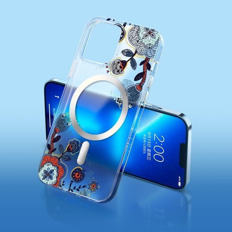 Θήκη τηλεφώνου MagSafe με ματ υφή λουλουδιών για iPhone 14 Plus (Λουλούδι Moire)