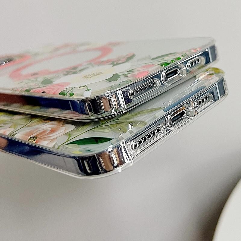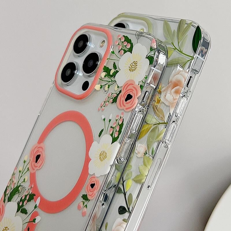 Θήκη τηλεφώνου MagSafe με διπλή πλαστικοποίηση και λουλούδια για iPhone 14 Plus (Μωβ)