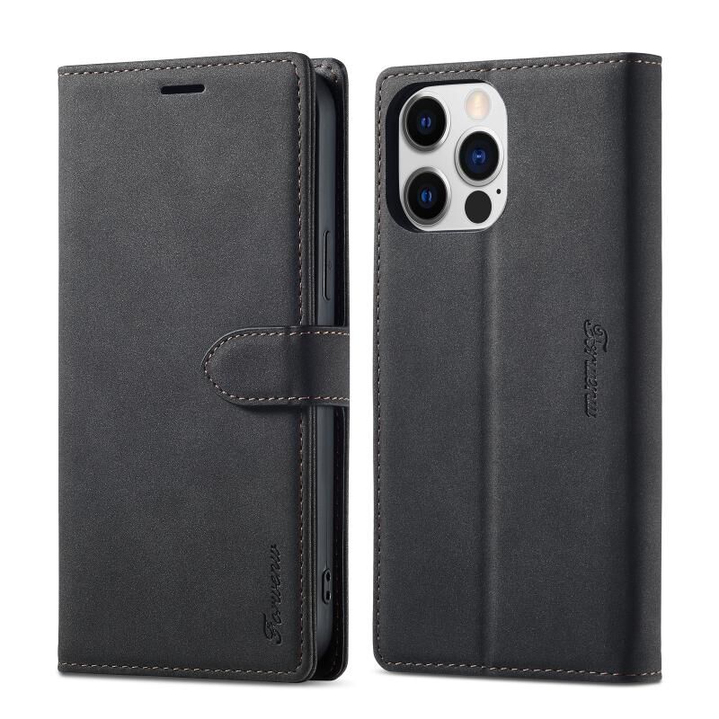 Θήκη τηλεφώνου δερμάτινη με ισχυρό μαγνητισμό και ματ υφή Forwenw F1 Series για iPhone 14 Plus (Μαύρο) (Forwenw)