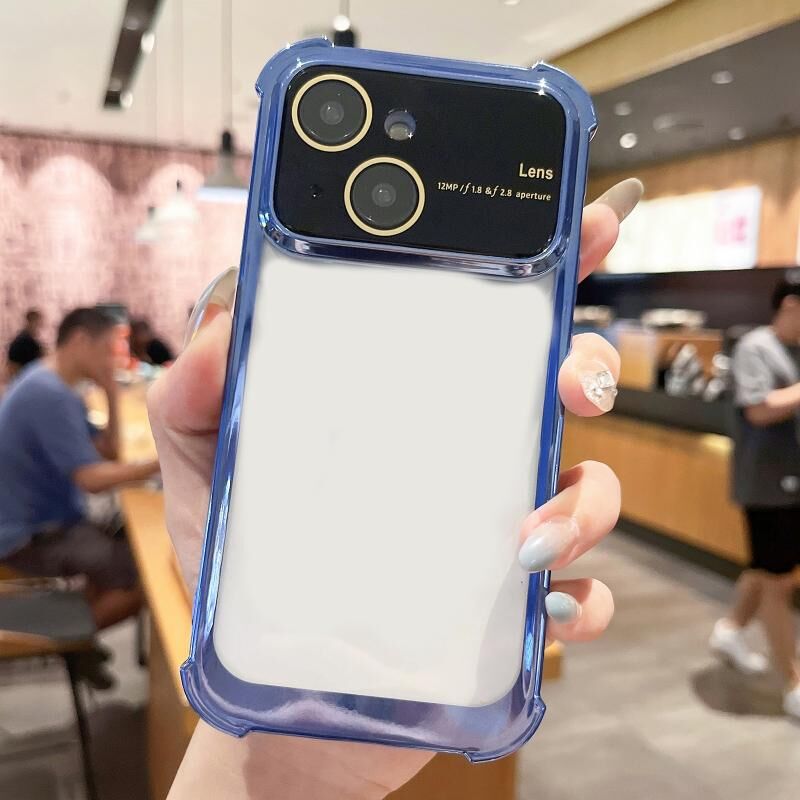 Θήκη κινητού τηλεφώνου TPU αντικραδασμική τεσσάρων γωνιών για iPhone 14 Plus με προστατευτική μεμβράνη φακού (Μπλε)