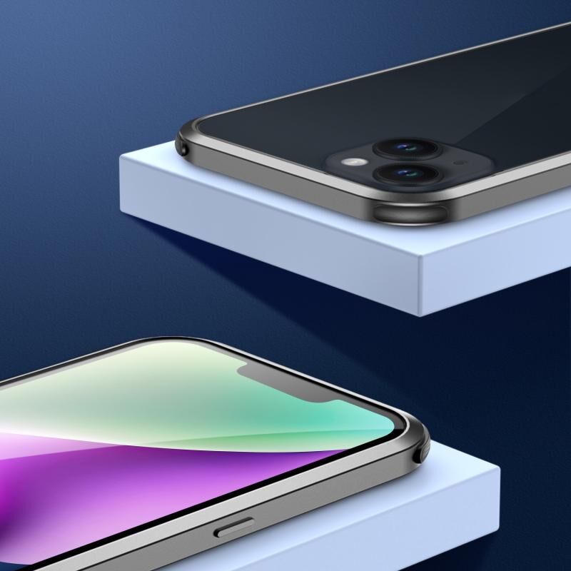 Θήκη τηλεφώνου για iPhone 14 Plus, ανθεκτική σε κρούσεις με μεταλλική κατασκευή, για τις τέσσερις γωνίες (Μαύρο)