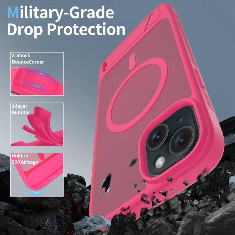 Θήκη για iPhone 14 Plus Μαγνητική, Υβριδική TPU & PC, Ματ (Ροζ Κόκκινο)