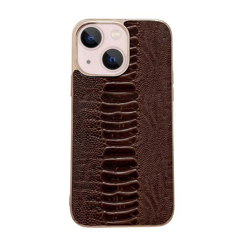 Θήκη κινητού τηλεφώνου Pinshang Series Nano Electroplating από γνήσιο δέρμα για iPhone 14 Plus (Καφές)