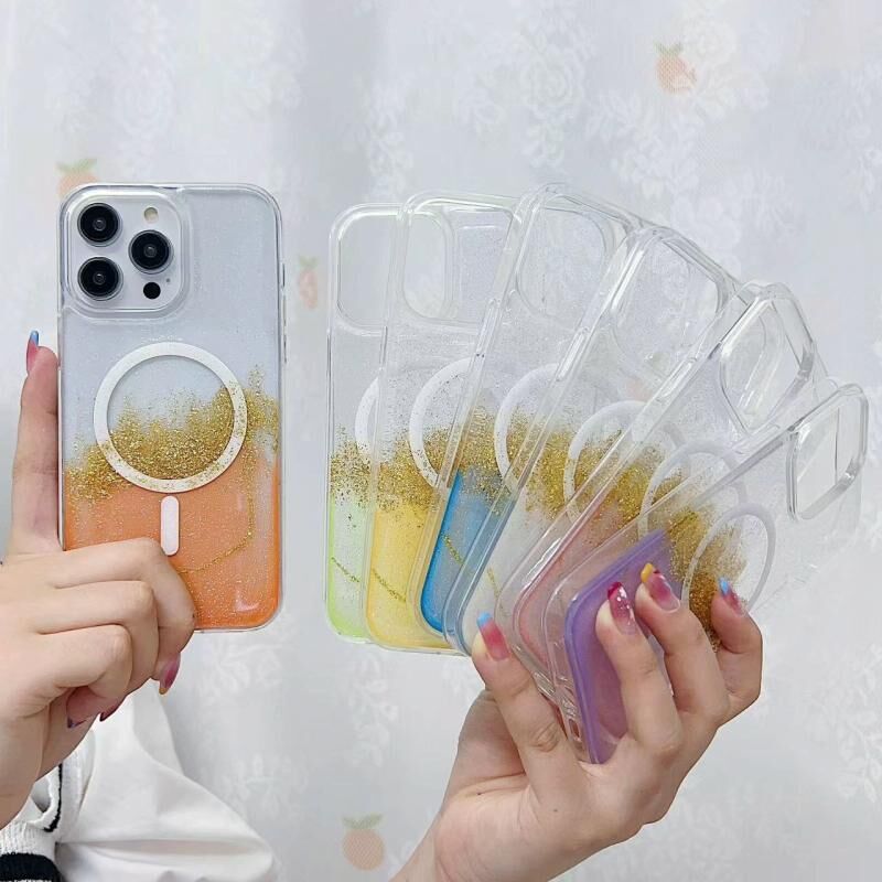Θήκη τηλεφώνου υβριδική διαφανής TPU με επιχρύσωση MagSafe για iPhone 14 Plus (Ροζ)