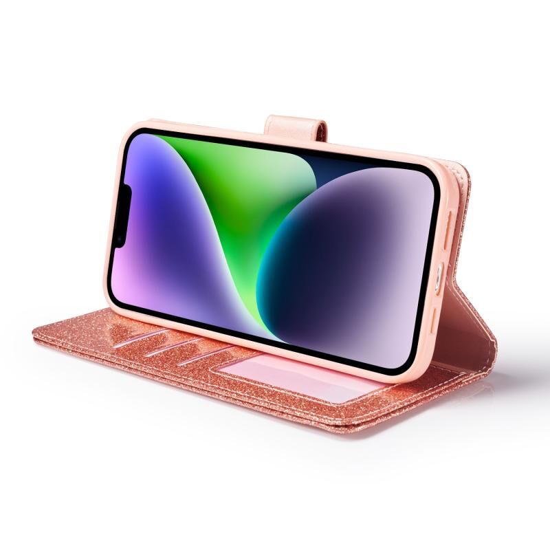 Θήκη τηλεφώνου από δέρμα με λάμψη και σκόνη γκλίτερ για iPhone 14 Plus (Κόκκινο Ρόδι)