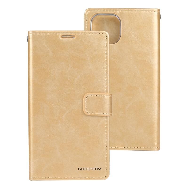Θήκη δέρματος με υφή Crazy Horse GOOSPERY BLUE MOON για iPhone 14 Plus (Χρυσό) (GOOSPERY)