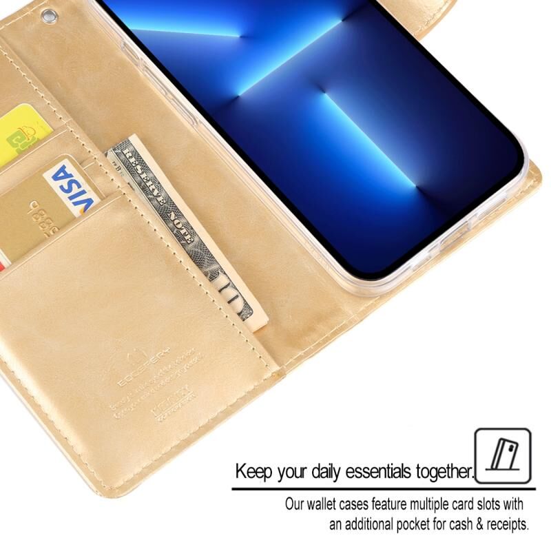 Θήκη δέρματος με υφή Crazy Horse GOOSPERY BLUE MOON για iPhone 14 Plus (Χρυσό) (GOOSPERY)