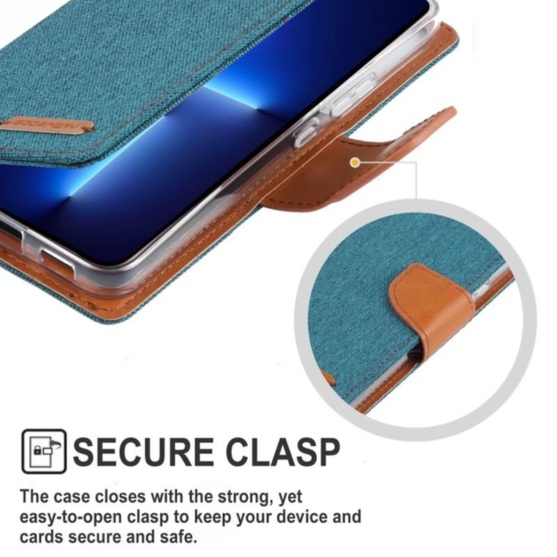 Θήκη τηλεφώνου GOOSPERY CANVAS DIARY με υφή καμβά και δερμάτινη κατασκευή για iPhone 14 Plus (Κόκκινο) (GOOSPERY)