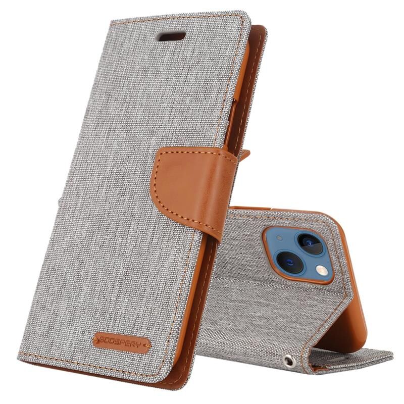Θήκη τηλεφώνου GOOSPERY CANVAS DIARY με υφή καμβά και δερμάτινη κατασκευή για iPhone 14 Plus (Κόκκινο) (GOOSPERY)