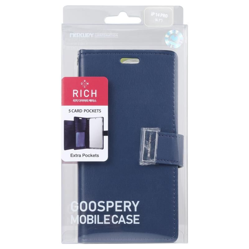 Θήκη GOOSPERY RICH DIARY για iPhone 14 Plus από Δέρμα Crazy Horse με Υφή (Χρυσό Ροζ) (GOOSPERY)