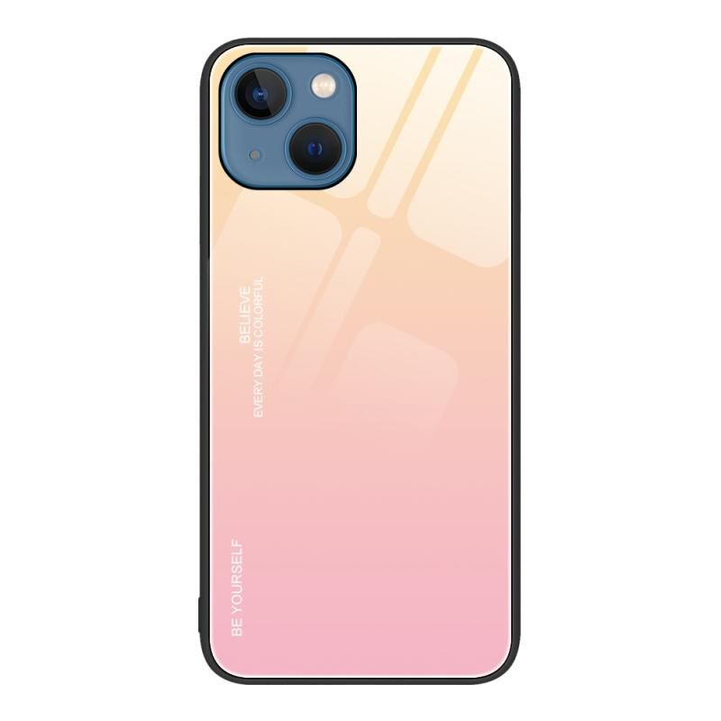 Θήκη για iPhone 14 Plus με γυαλί και διαβαθμιστικά χρώματα (Κίτρινο Ροζ)