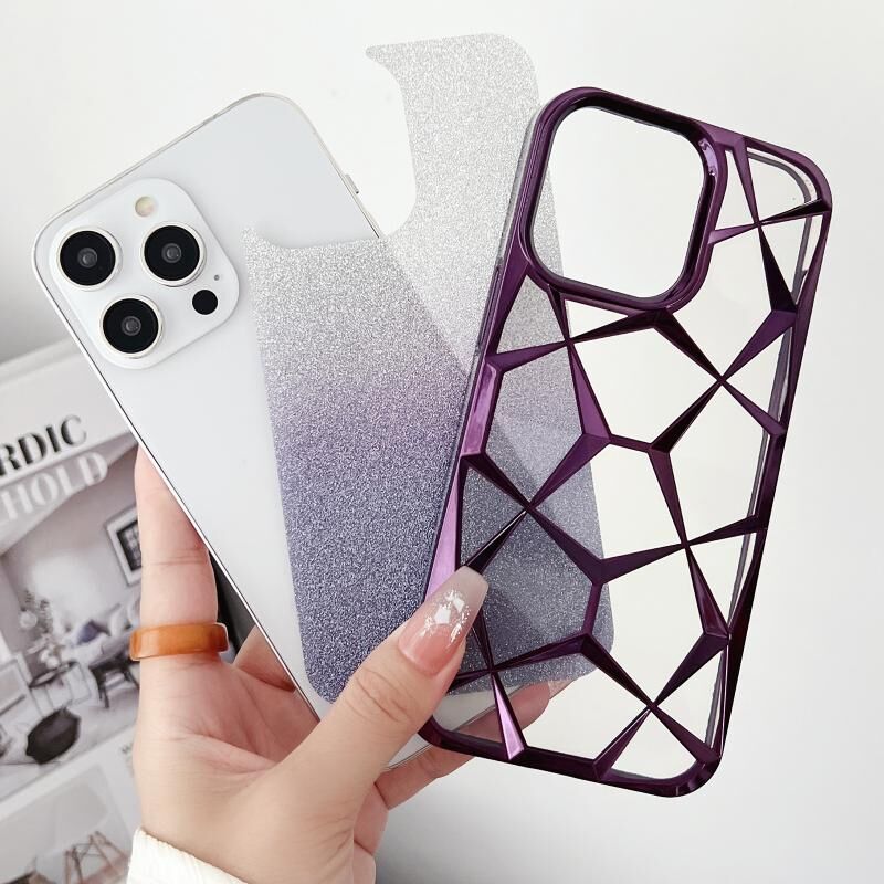 Θήκη τηλεφώνου για iPhone 14 Plus, διαφανής με ιριδίζοντα χρώματα, σχέδιο κύβου νερού, επιμετάλλωση TPU (Μωβ)