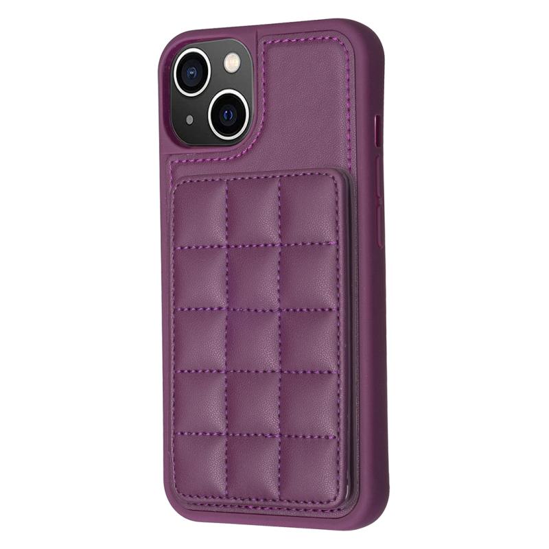 For iPhone 14 Plus Grid Card Slot Holder Phone Case(Dark Purple)