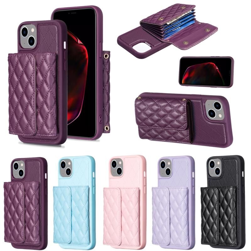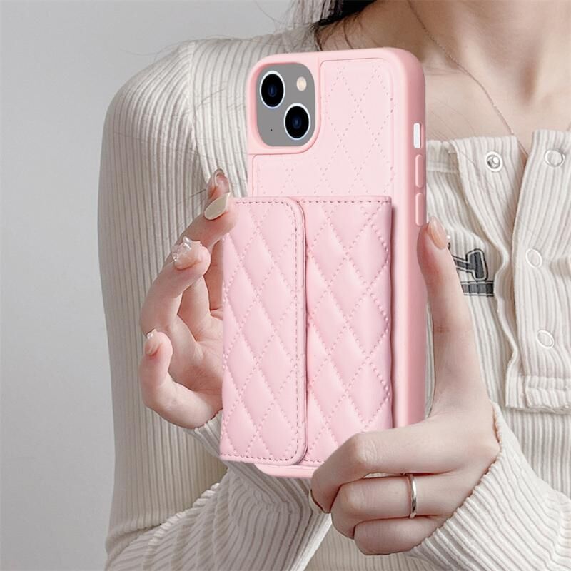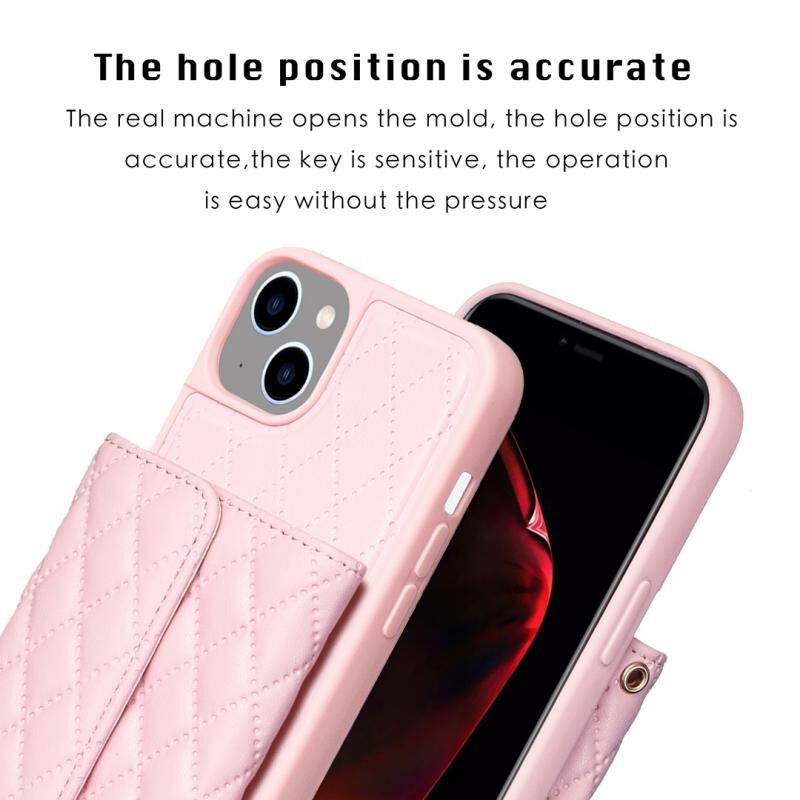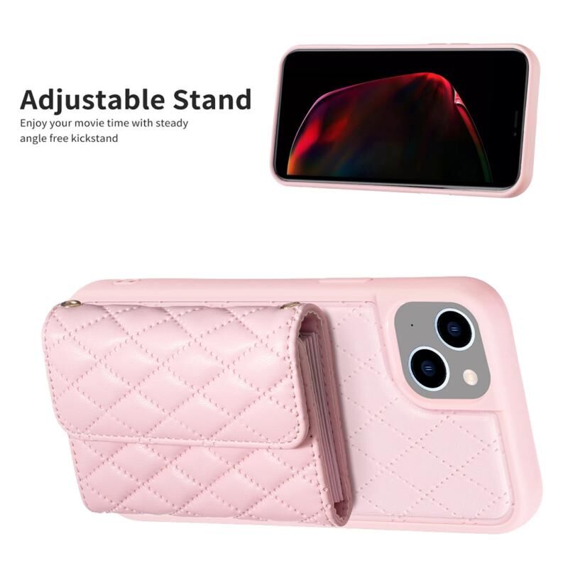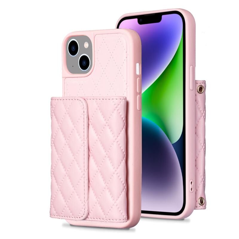 Θήκη τηλεφώνου οριζόντιο πορτοφόλι για iPhone 14 Plus, δερμάτινη με ρόμβους (Ροζ)