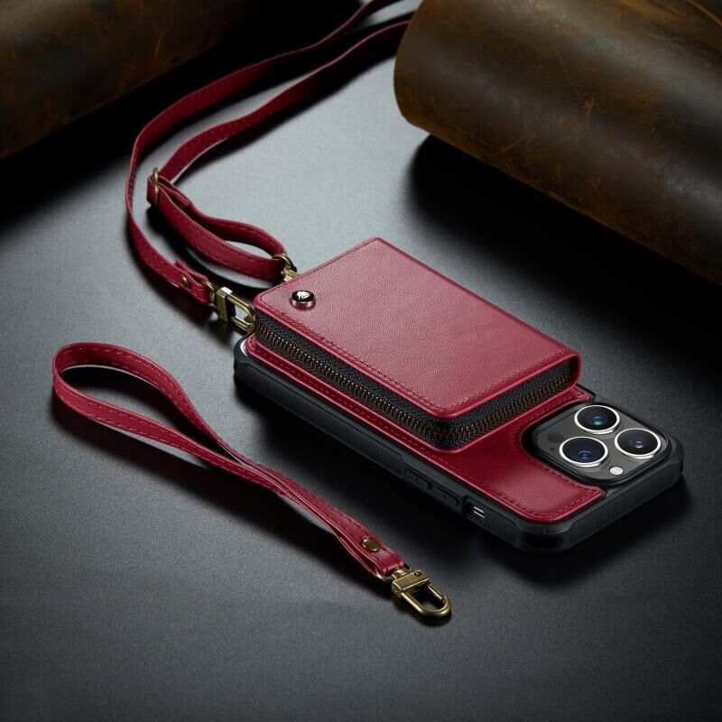 Θήκη τηλεφώνου JEEHOOD C22 Series με φερμουάρ και λουρί (μακρύ και κοντό) για iPhone 14 Plus (Μαύρο) (JEEHOOD)