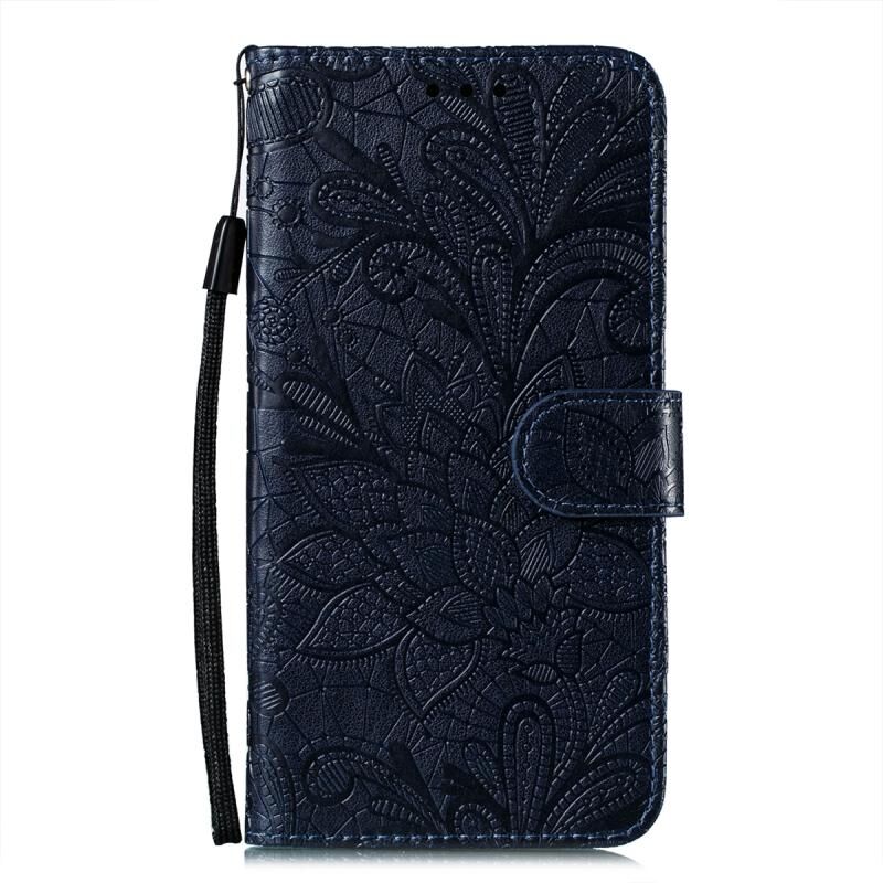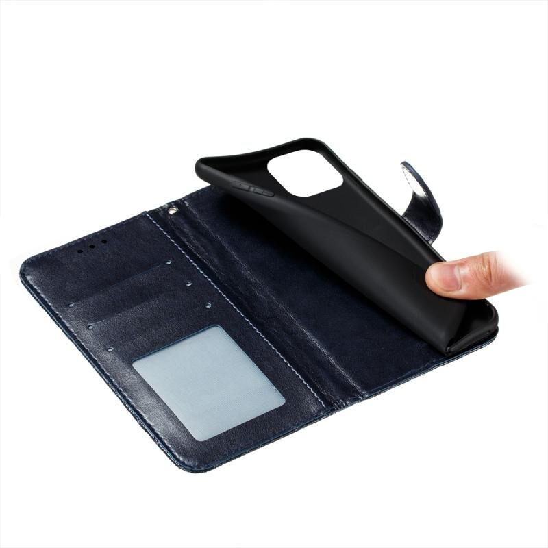 Θήκη τηλεφώνου από δέρμα με ανάγλυφο σχέδιο δαντέλας και λουλουδιών για iPhone 14 Plus (Μωβ)