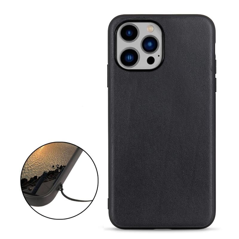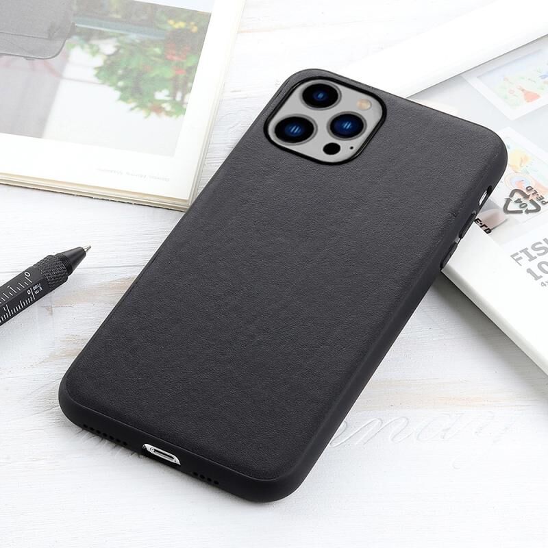 Θήκη τηλεφώνου από γνήσιο δέρμα με υφή δέρματος αρνιού για iPhone 14 Plus (Μαύρο)