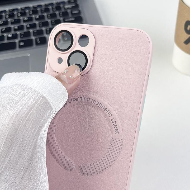 Θήκη τηλεφώνου για iPhone 14 Plus από δέρμα, πλήρως προστατευτική, με MagSafe και TPU (Ροζ)