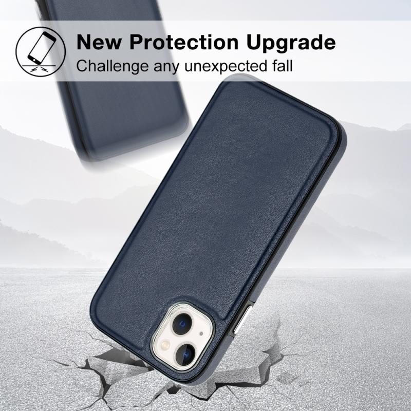 Θήκη τηλεφώνου για iPhone 14 Plus με υφή δέρματος και πλήρη κάλυψη (Μπλε)