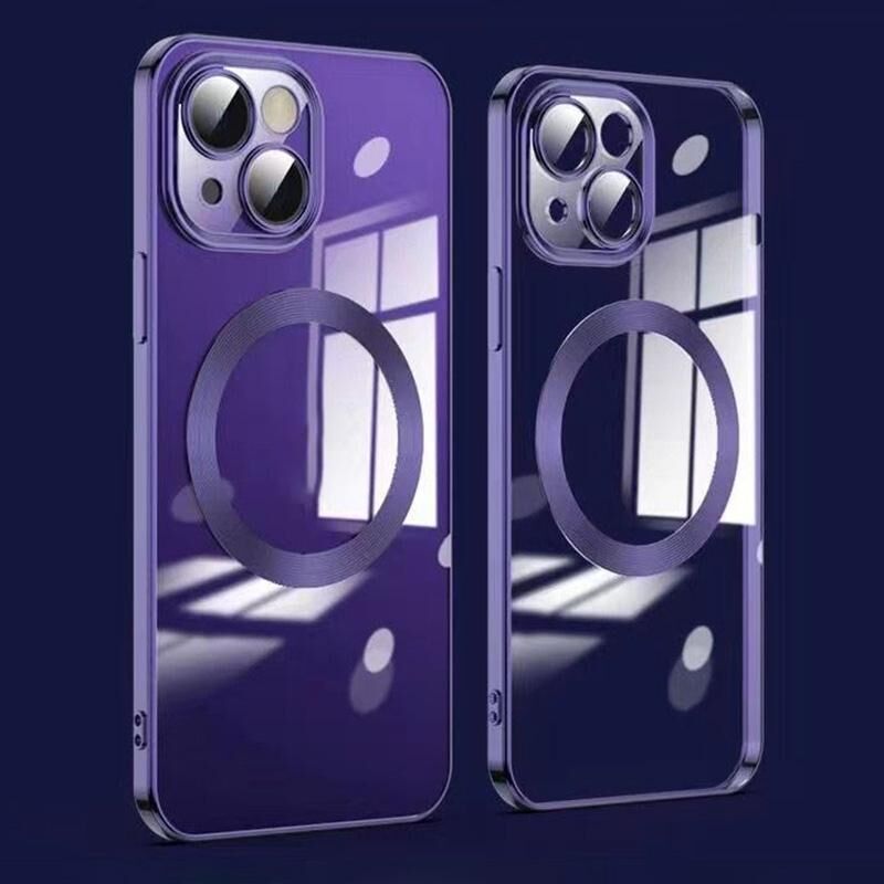 Θήκη τηλεφώνου με προστασία φακού για iPhone 14 Plus, με MagSafe και επιμετάλλωση (βαθύ μωβ)