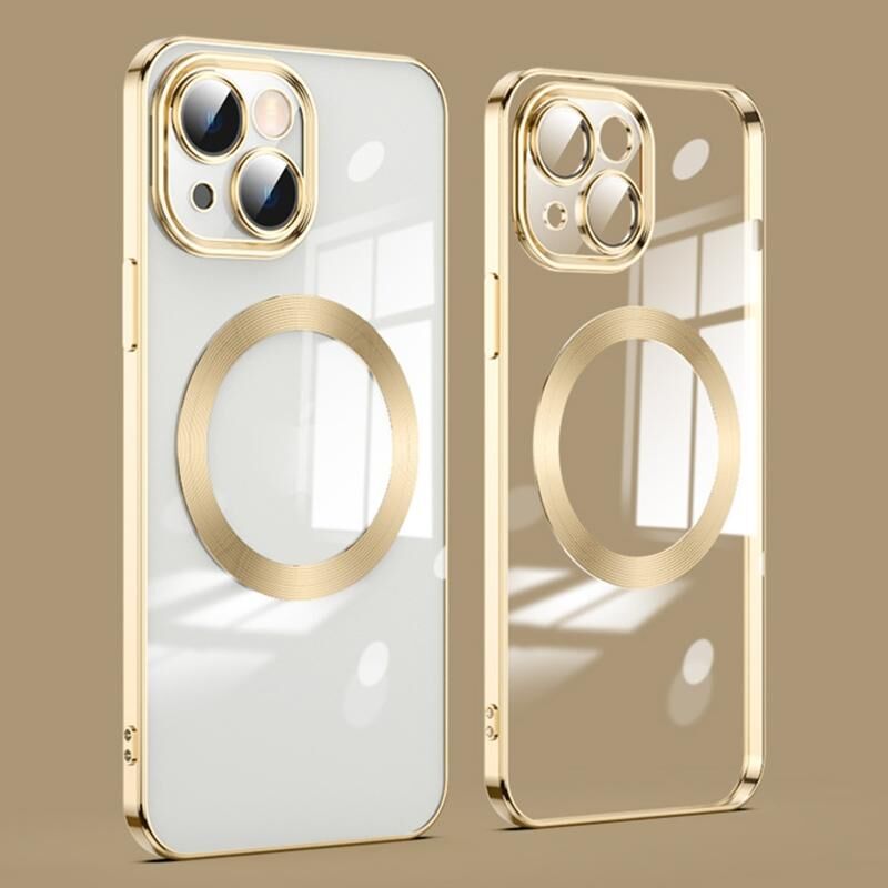 Θήκη τηλεφώνου με προστασία φακού για iPhone 14 Plus, με MagSafe και επιμετάλλωση (Gold)