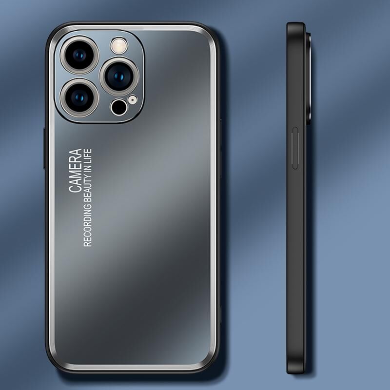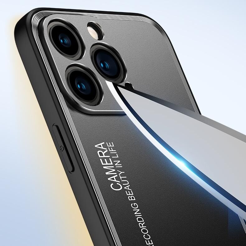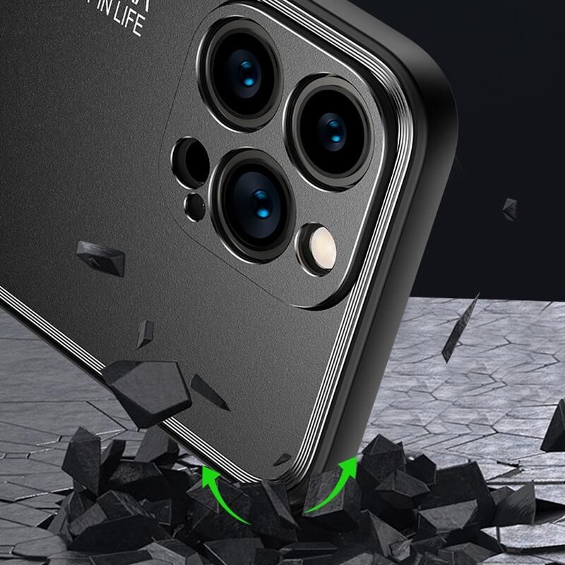 Θήκη τηλεφώνου από μεταλλικό, παγωμένο υλικό για iPhone 14 Plus, σειρά Φως και Σκιά (Μαύρο)