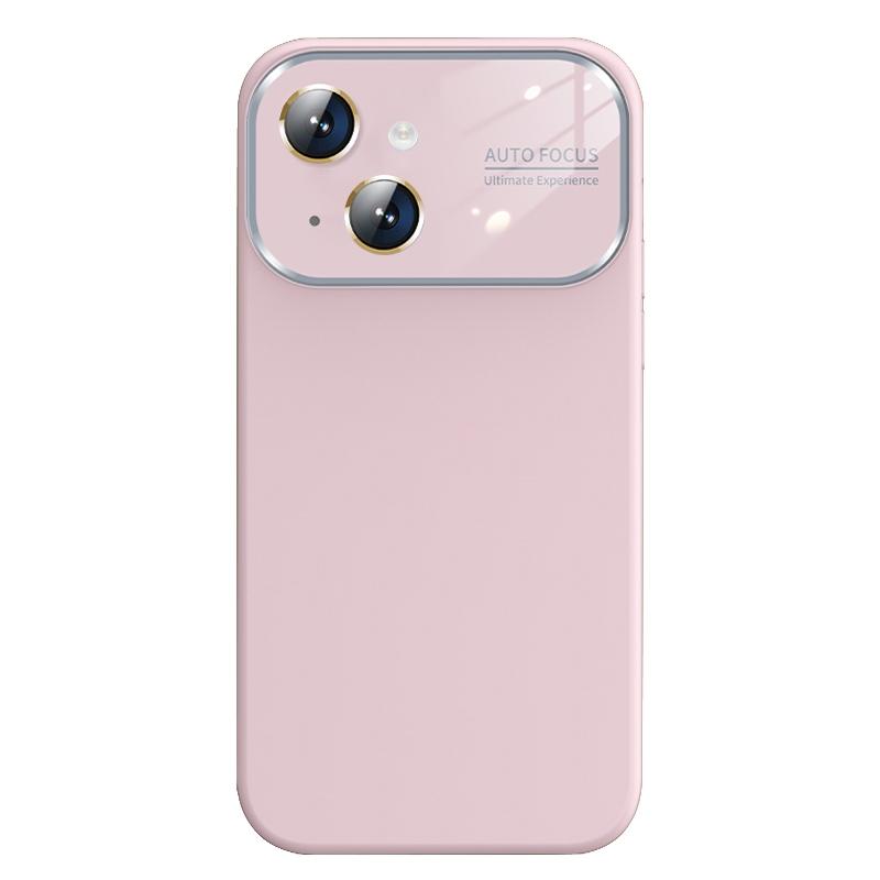 For iPhone 14 Plus Liquid Silicone Large Glass Window Phone Case(Pink)