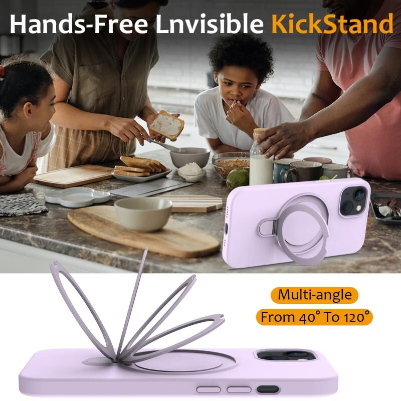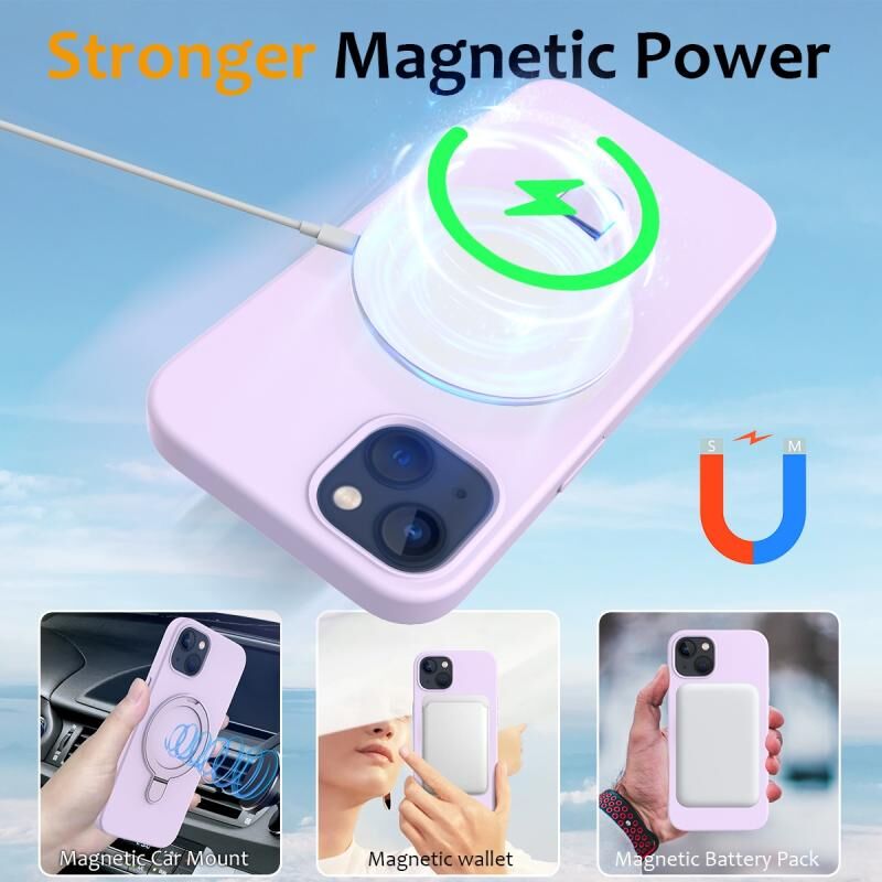 Θήκη τηλεφώνου με μαγνητική σύνδεση MagSafe από υγρή σιλικόνη για iPhone 14 Plus με δακτύλιο στήριξης (Λευκό)