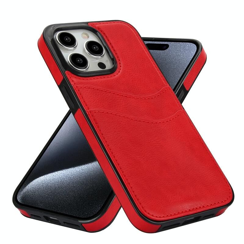 Θήκη τηλεφώνου για iPhone 14 Plus από δέρμα Litchi με θήκες για κάρτες (Κόκκινο)
