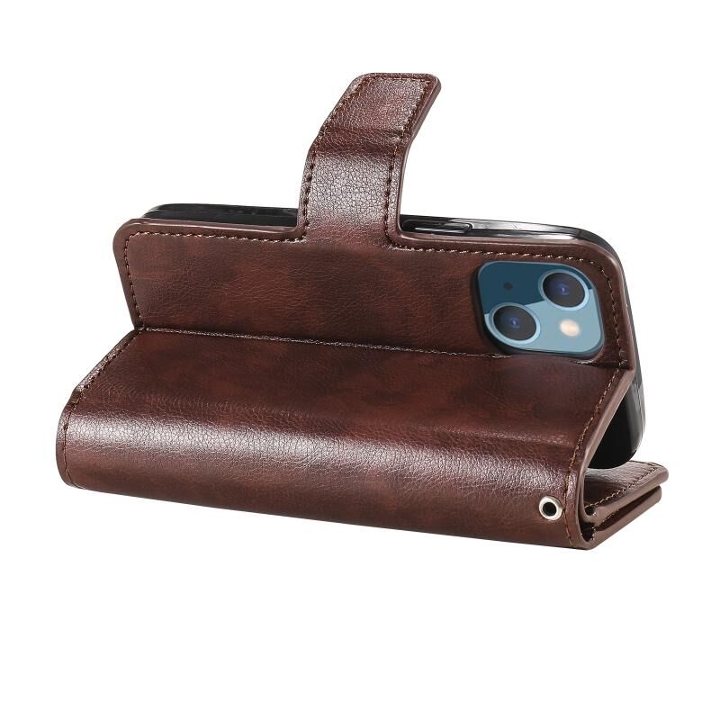 Θήκη τηλεφώνου από δέρμα με υφή λύτσι για iPhone 14 Plus, τριπλή θήκη πορτοφολιού με 9 θέσεις για κάρτες (Καφέ)