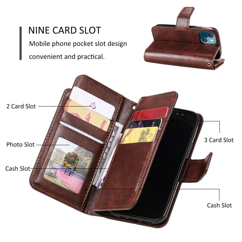 2. Λειτουργία πορτοφολιού 9 καρτών: 9 υποδοχές για κάρτες και 3 διαμερίσματα για μετρητά για την αποθήκευση των πιστωτικών σας καρτών, μετρητών ή μικρών σημειώσεων για καθημερινή χρήση.