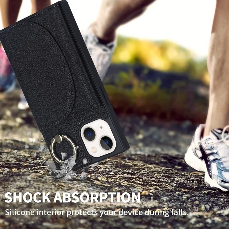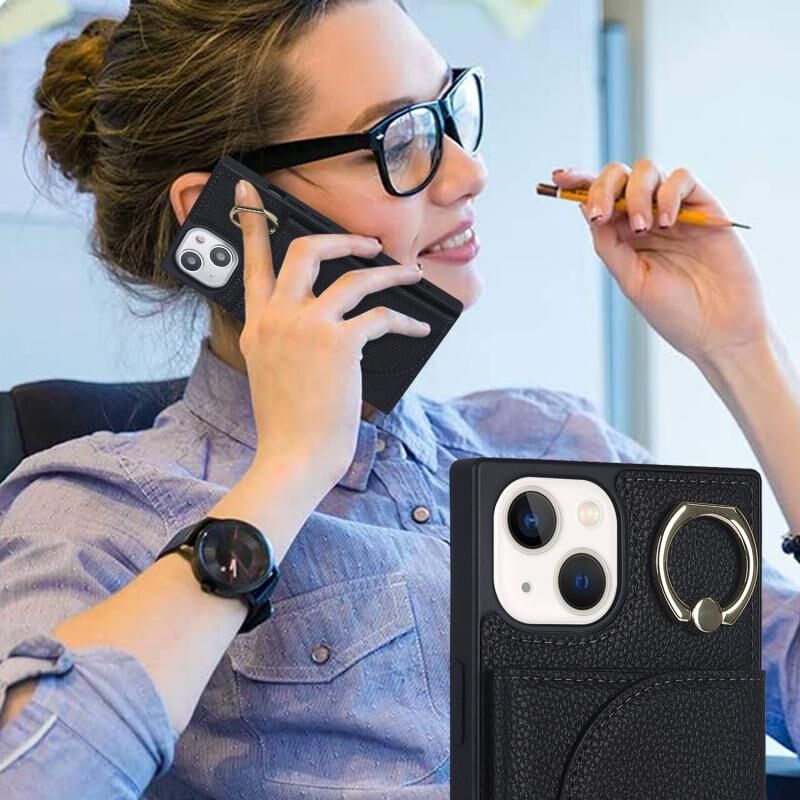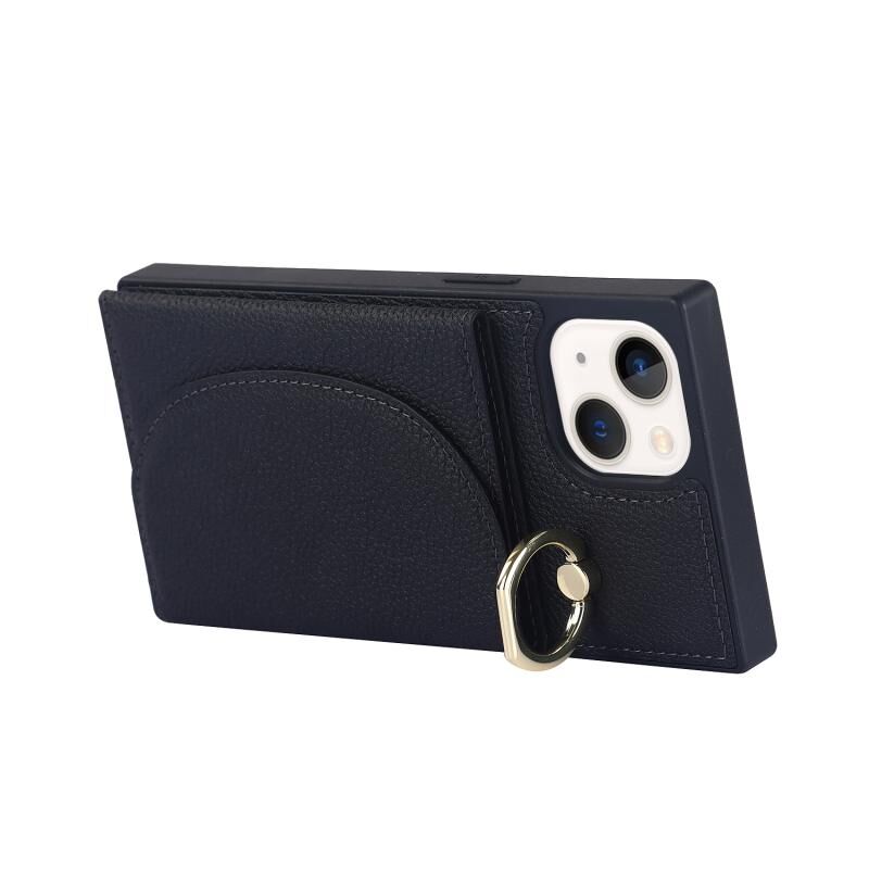 Θήκη τηλεφώνου για iPhone 14 Plus με υφή δέρματος λitchi και θήκη καρτών (Ροζ)