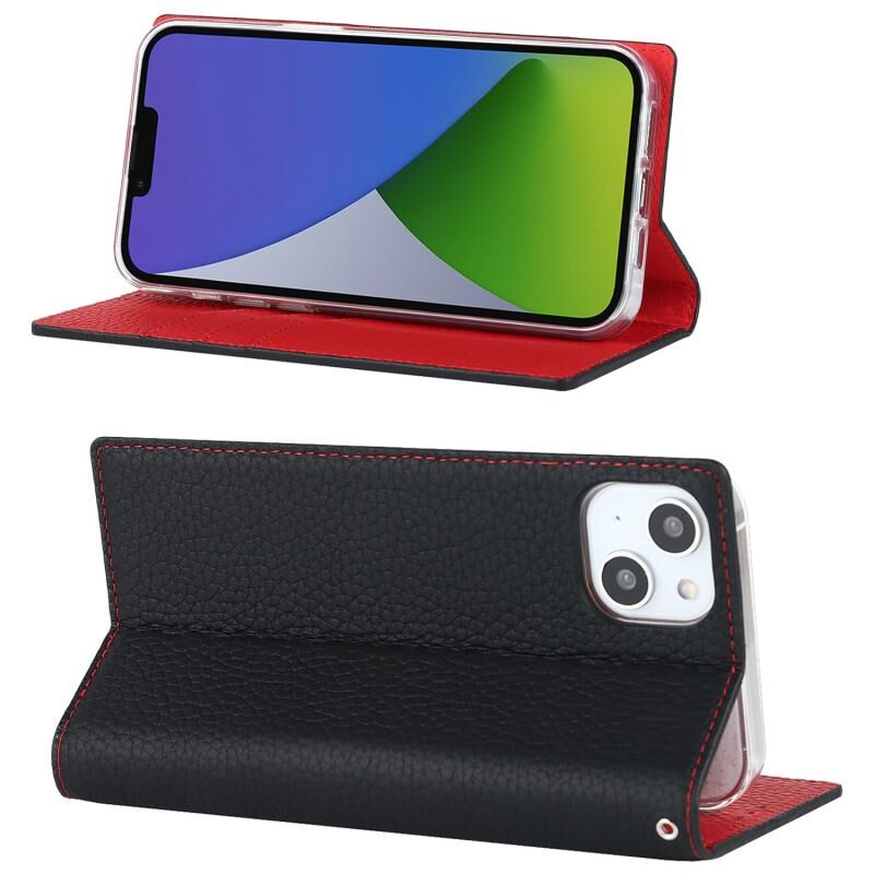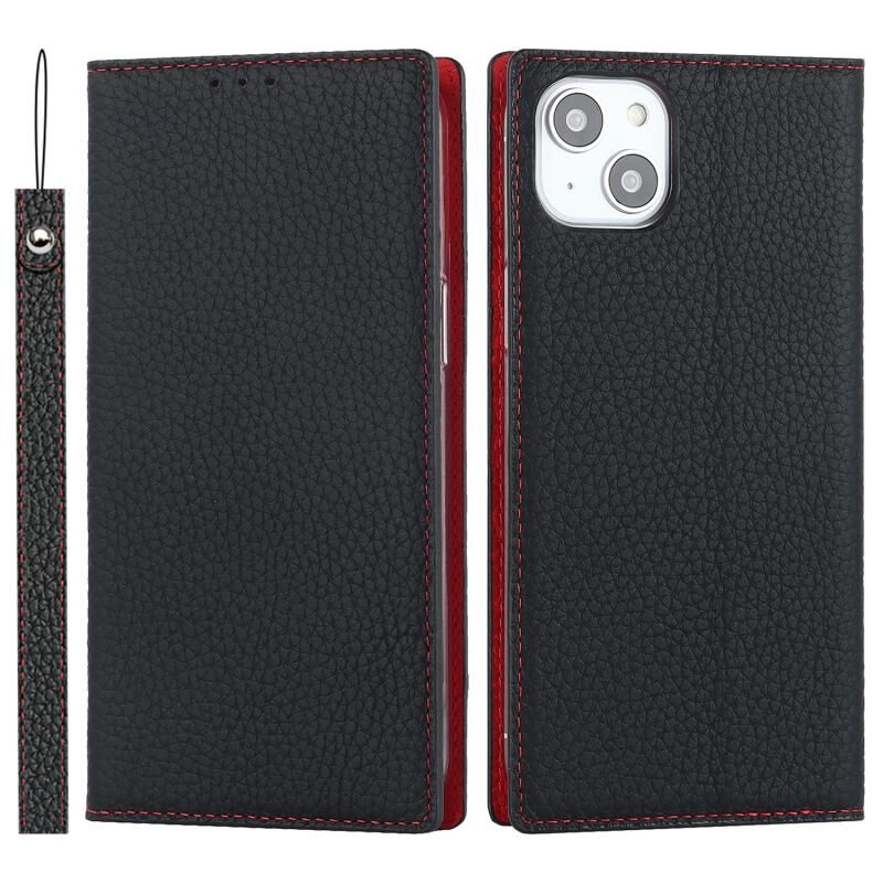 Θήκη τηλεφώνου από γνήσιο δέρμα με υφή λύτσι για iPhone 14 Plus (Μαύρο)