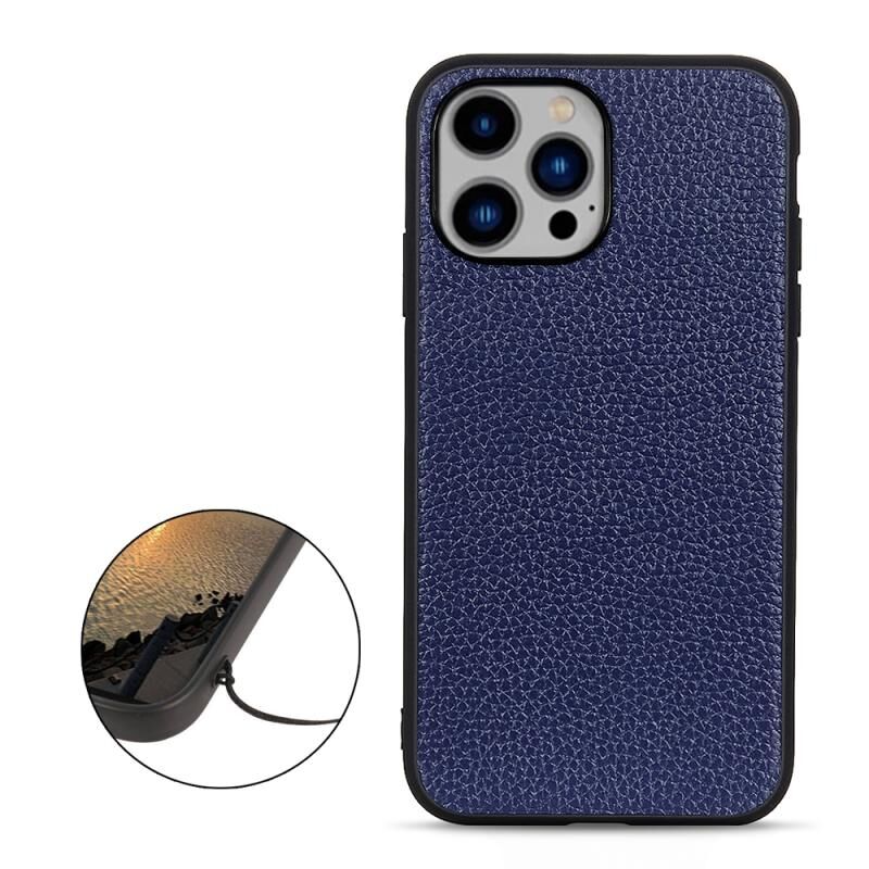 Θήκη τηλεφώνου από γνήσιο δέρμα με υφή λύτσι για iPhone 14 Plus (Μαύρο)