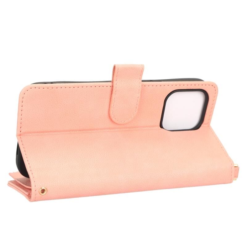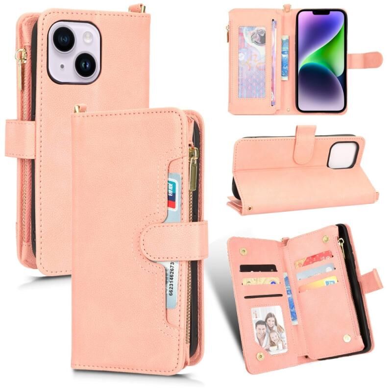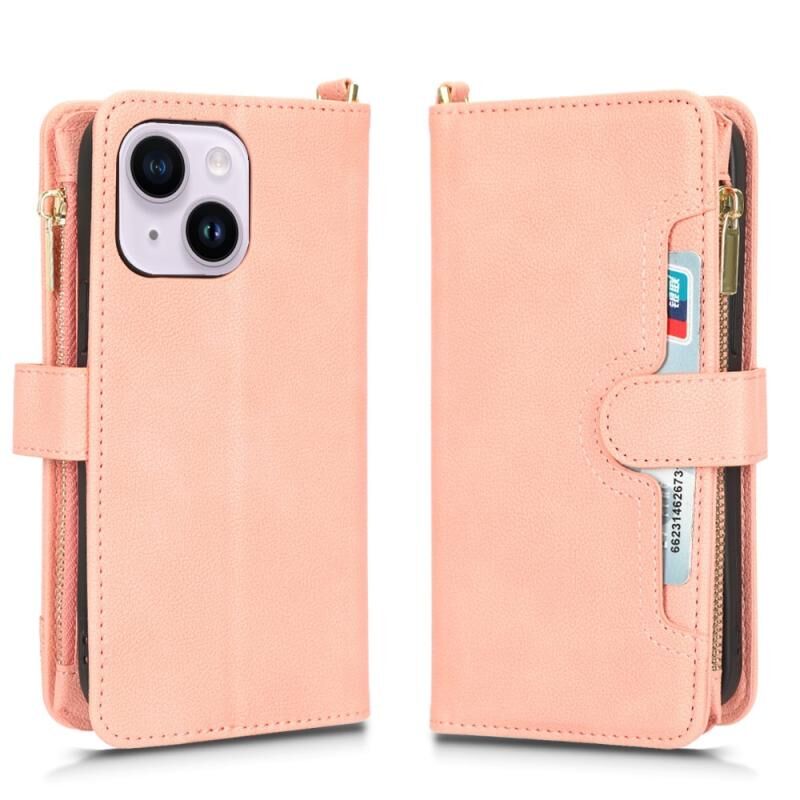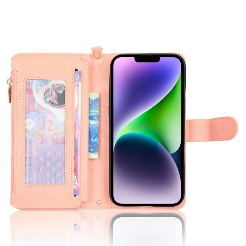 Θήκη τηλεφώνου από δέρμα με υφή λυτσί και φερμουάρ για iPhone 14 Plus (Μαύρο)