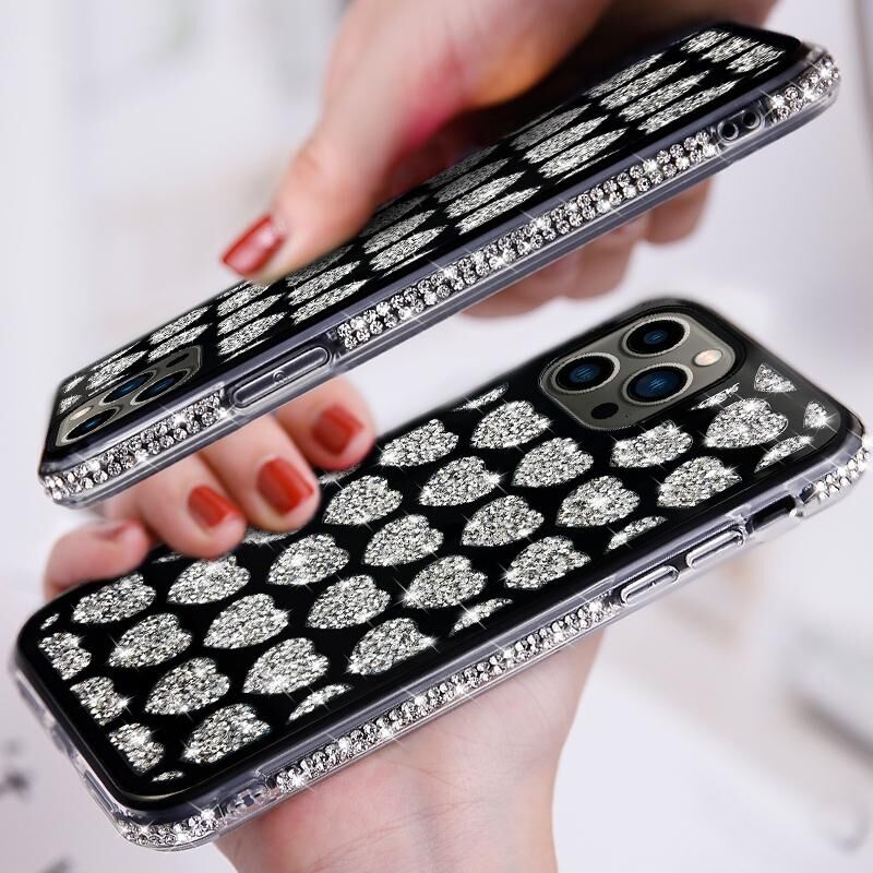 Θήκη τηλεφώνου TPU με καθρέφτη διαμαντιών και καρδιές για iPhone 14 Plus (Χρυσό)