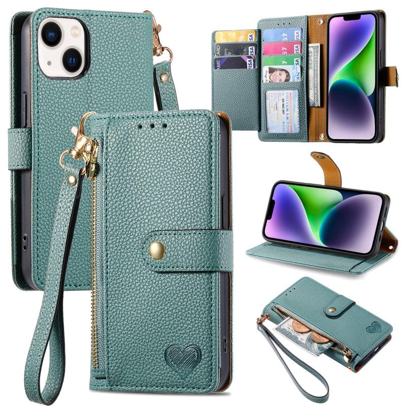 Θήκη τηλεφώνου δερμάτινη με φερμουάρ και λουρί για iPhone 14 Plus (Καφέ)