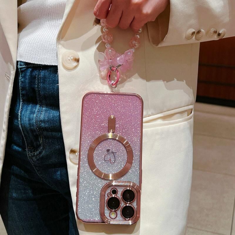 Θήκη τηλεφώνου για iPhone 14 Plus με σχέδιο Gradient Glitter, βραχιόλια, ανθρακονήματα, Magsafe, TPU (Ροζ)