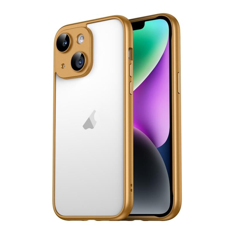 Για iPhone 14 Plus Μακαρόν θήκη PC τηλεφώνου με καθαρό πλαίσιο περιμετρικά και προστατευτική μεμβράνη φακού (Λευκό)
