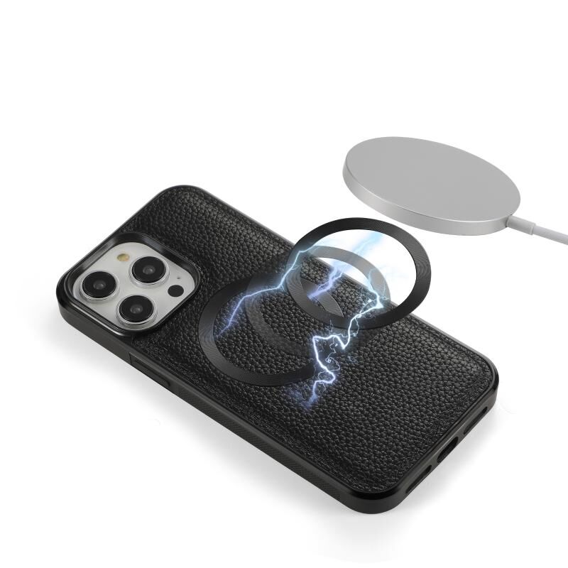 Θήκη τηλεφώνου για iPhone 14 Plus MagSafe Crossbody, πολυλειτουργική με φερμουάρ και δέρμα Lychee (Πορτοκαλί)