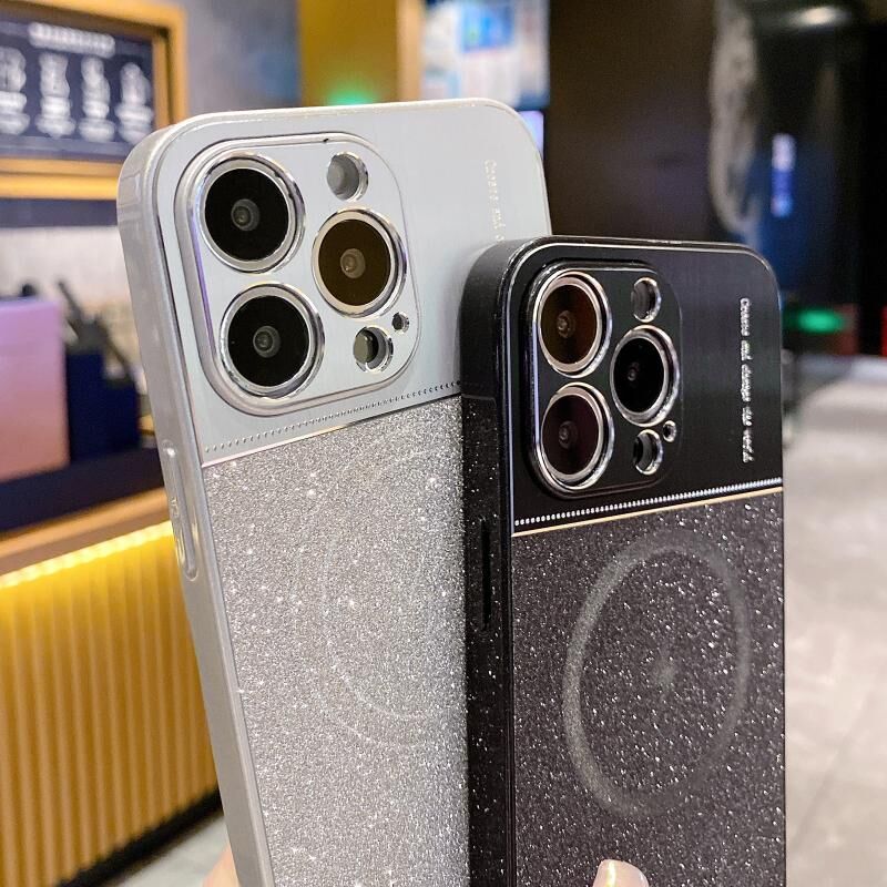 Θήκη τηλεφώνου για iPhone 14 Plus με MagSafe, μαγνητική, μεταλλική, με γκλίτερ και αντικραδασμική προστασία (Γκρι)