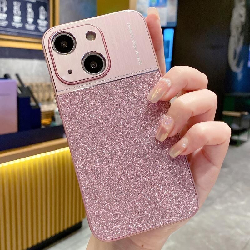 Θήκη τηλεφώνου για iPhone 14 Plus με MagSafe, μαγνητική, μεταλλική, με γκλίτερ και αντικραδασμική προστασία (Γκρι)