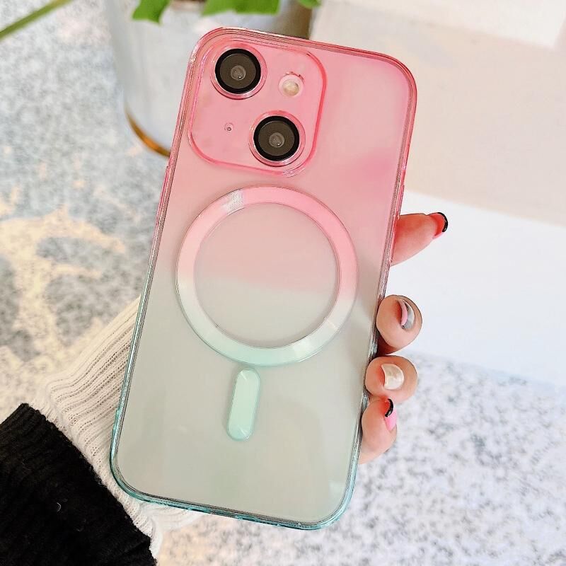 Θήκη τηλεφώνου για iPhone 14 Plus MagSafe Μαγνητική TPU + Ακρυλικό Διαβαθμισμένο Χρώμα (Ροζ Μπλε)