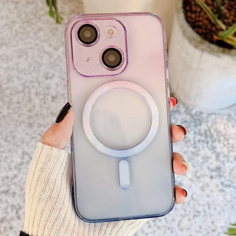 Θήκη τηλεφώνου για iPhone 14 Plus MagSafe Μαγνητική TPU + Ακρυλικό Διαβαθμισμένο Χρώμα (Ροζ Μπλε)